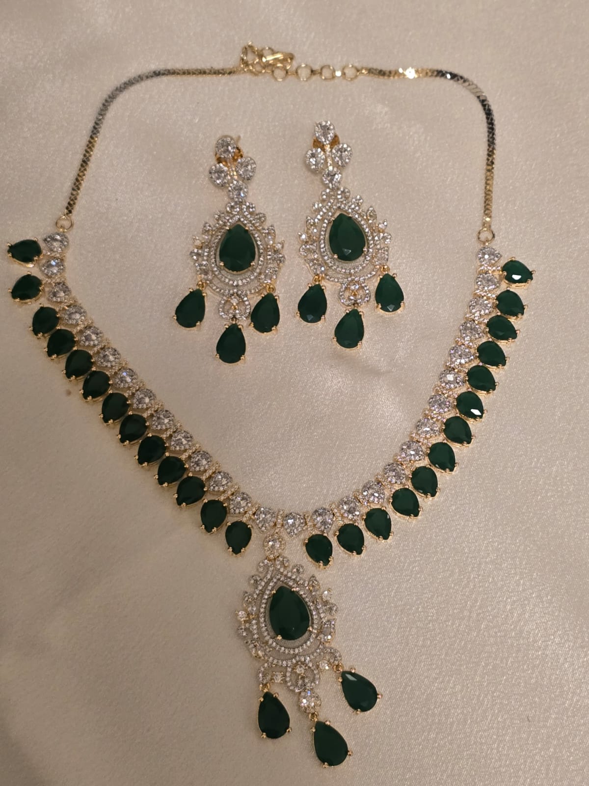 Emerald Drop Charm Necklace Set