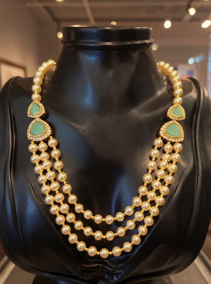 Emerald Glow Triple Pearl Necklace