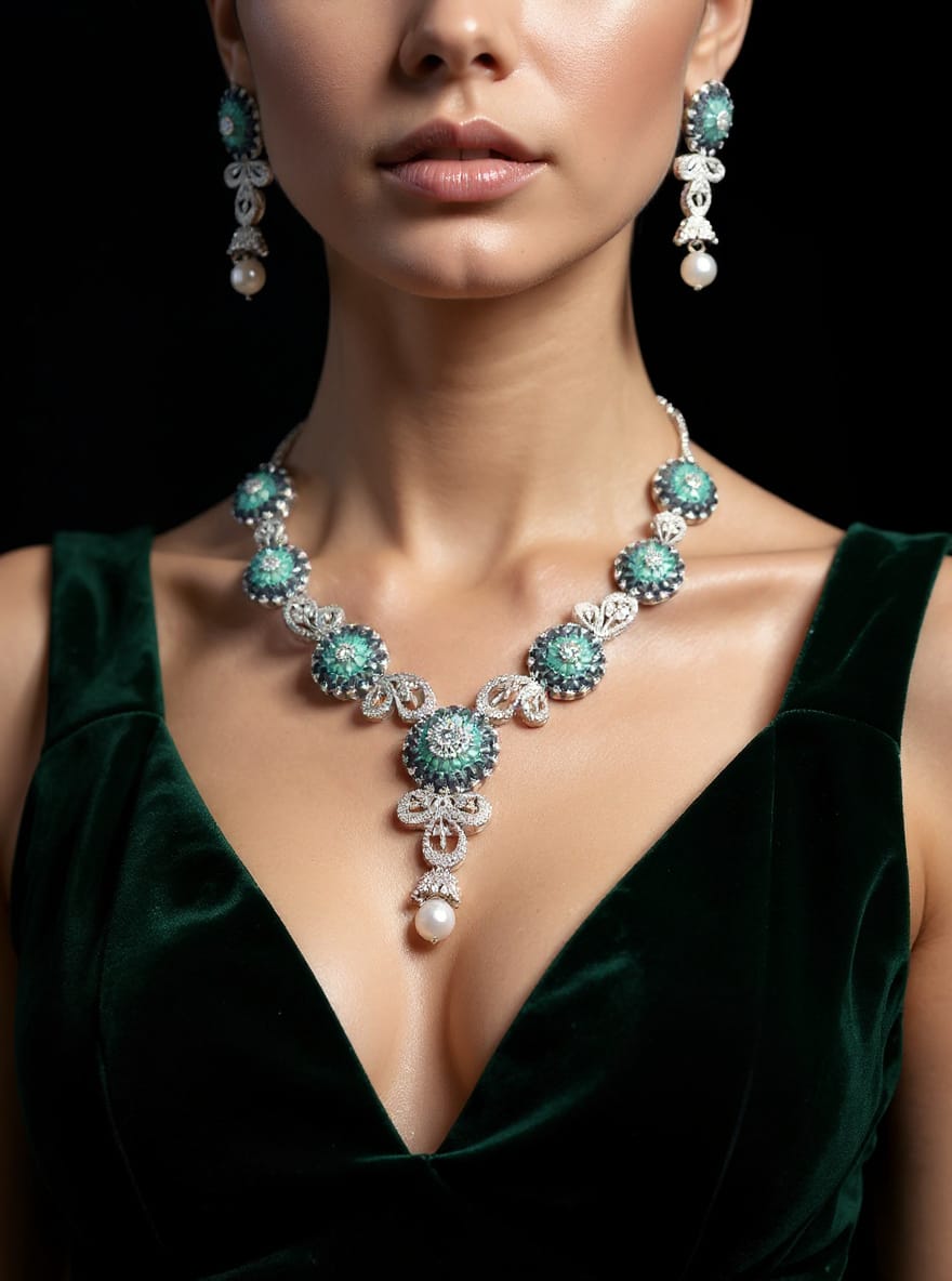Emerald Blossom Crystal Necklace Set