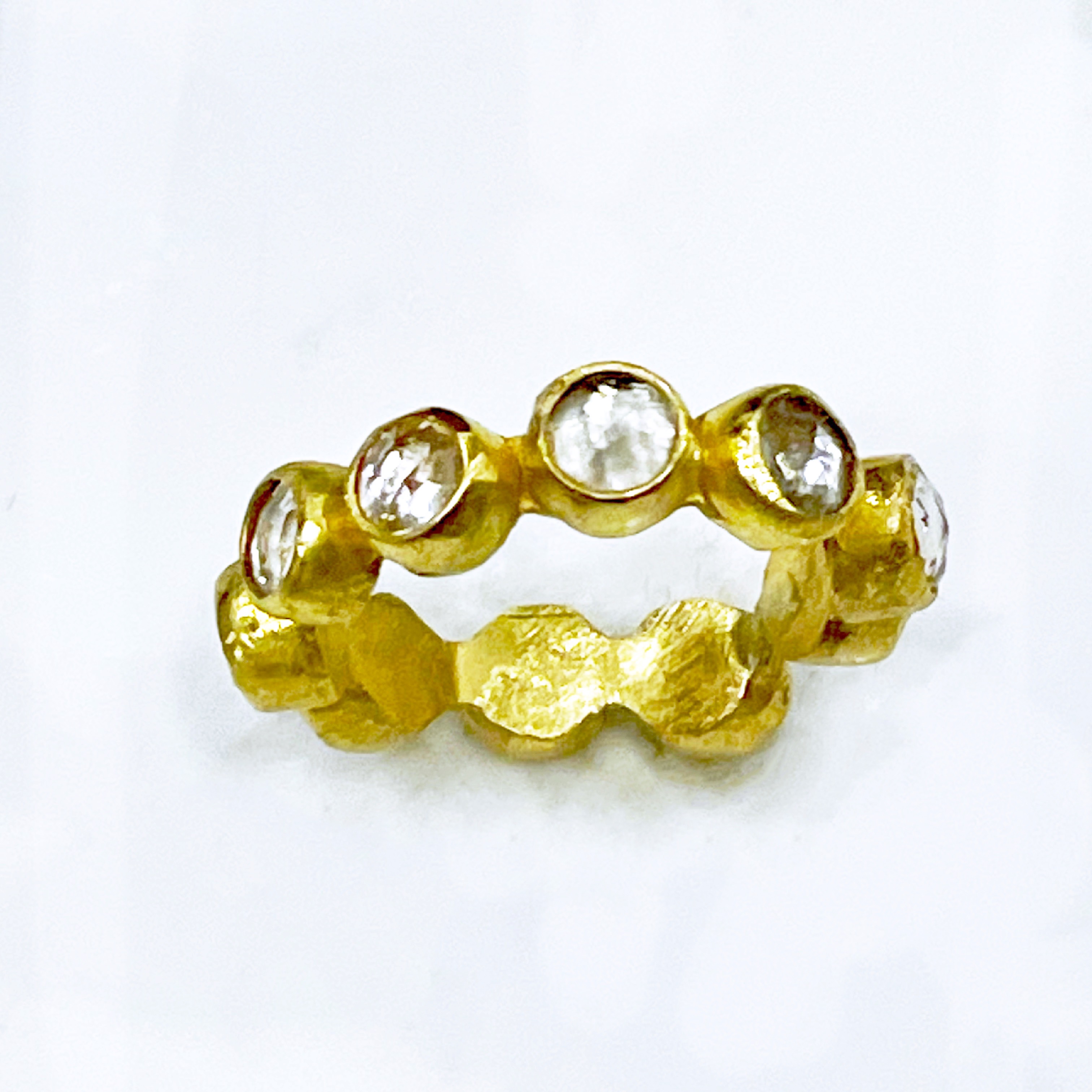 Bosch pink (and blue) sapphire 22k gold bezel ring
