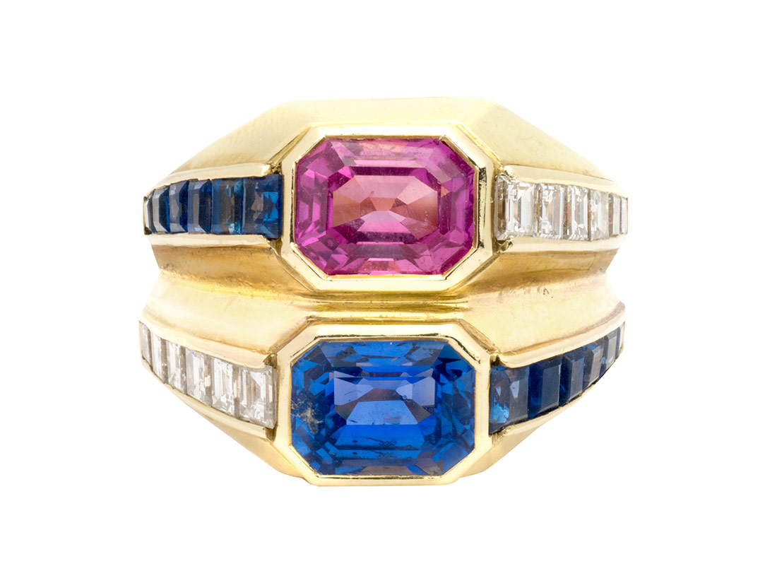 BULGARI Pink & Blue Sapphire and Diamond Ring